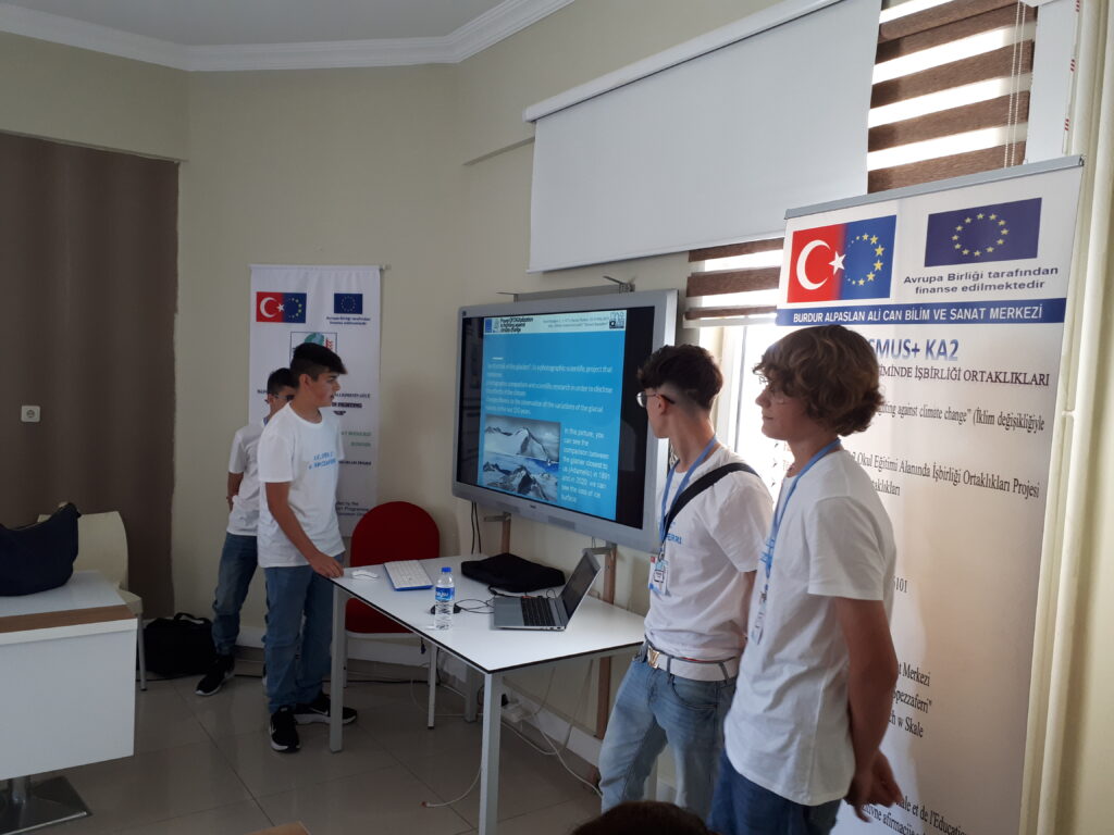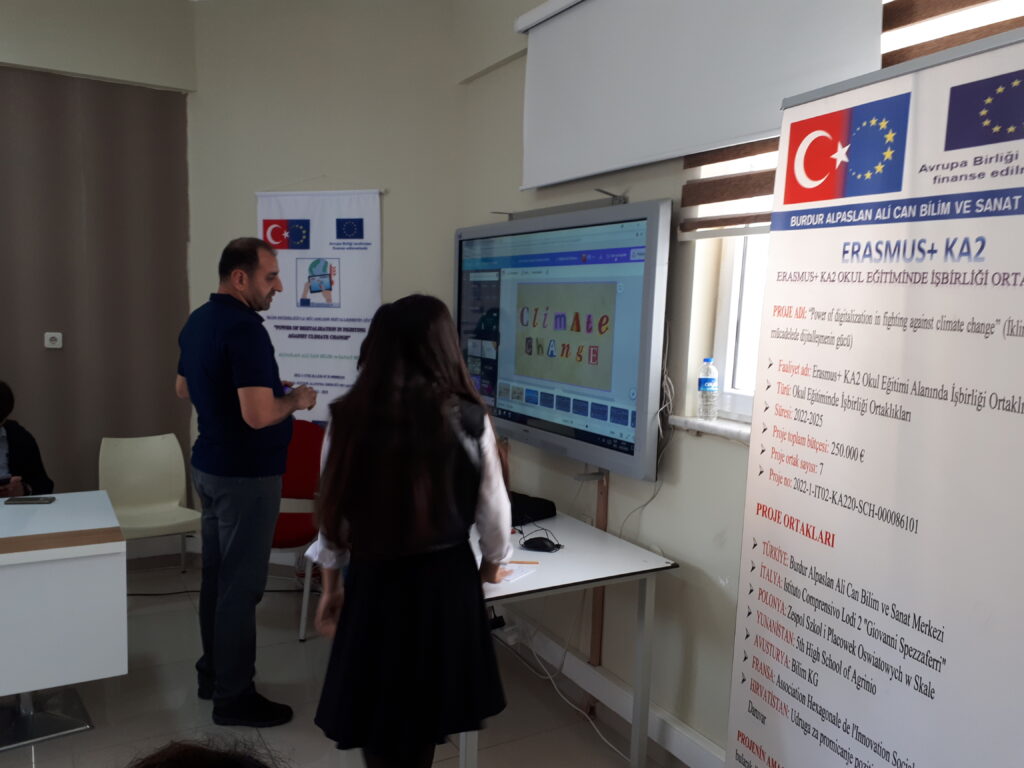 Welcome speech by the principal Mr. Tuncay SAKAR at the school meeting hall and Presentation of games or stories prepared by using Scratch and poster made in Canva